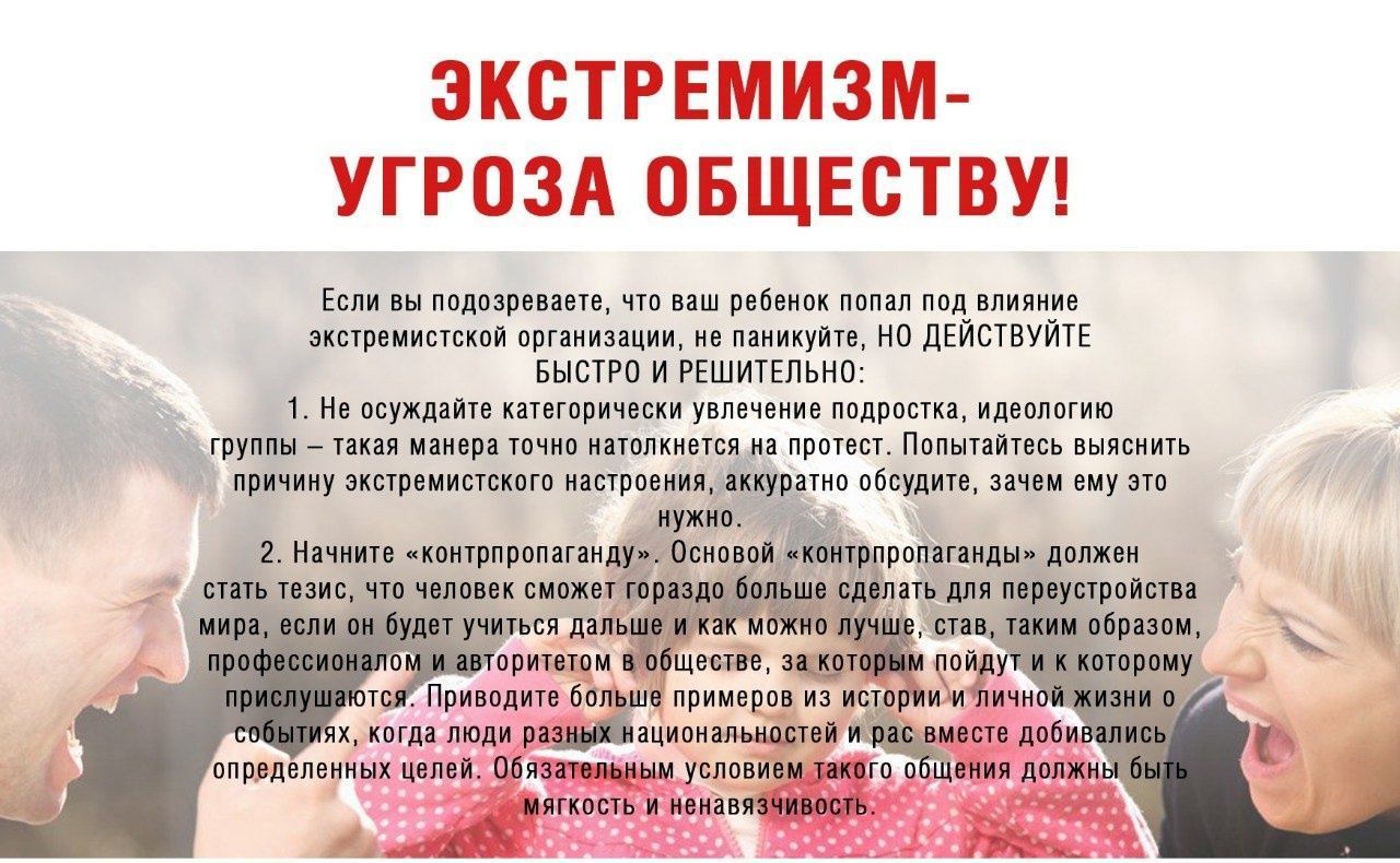 - Регулярное информирование родителей воспитанников памятками по профилактике экстремизма.
